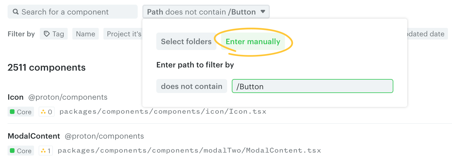 Alternatively, you can also switch to "Enter manually" to select components based on a file path you manually enter.