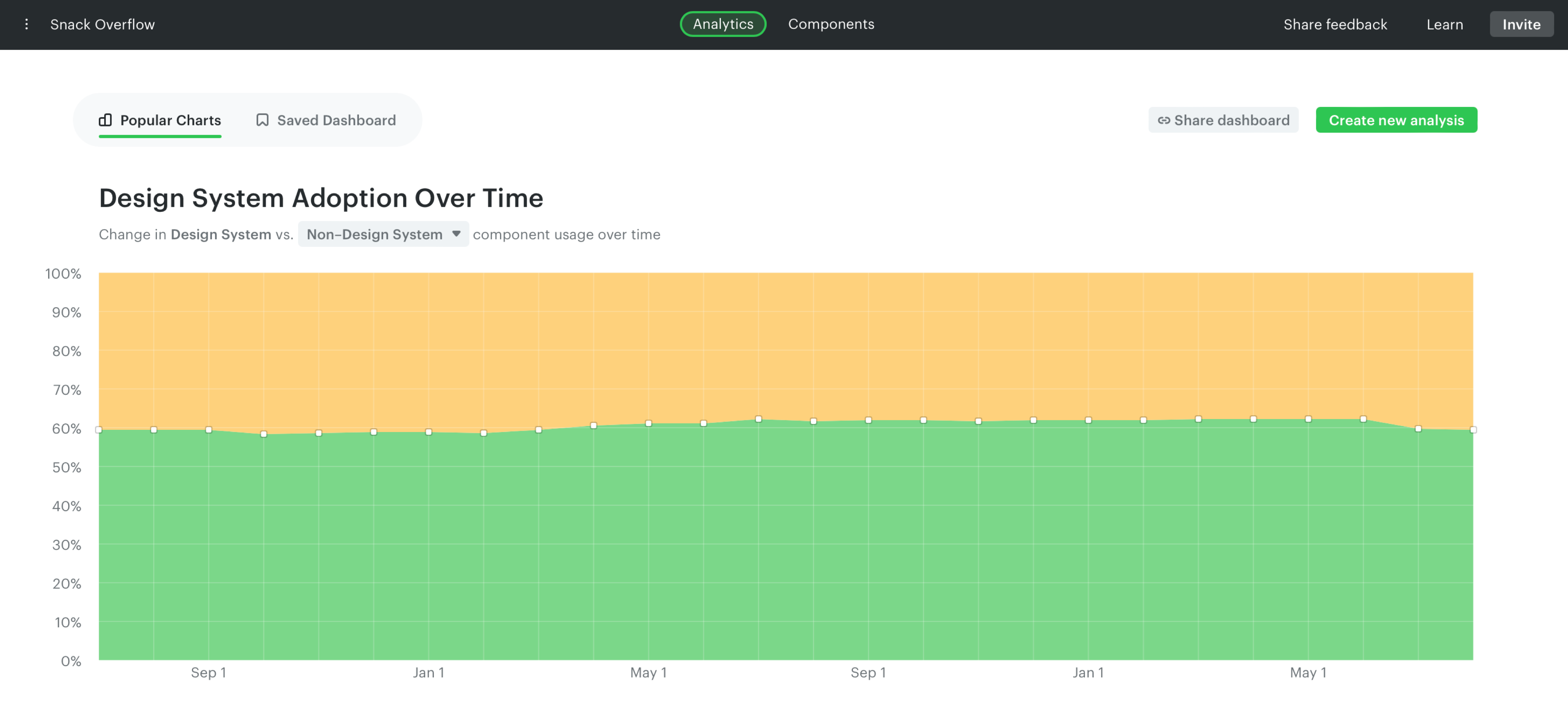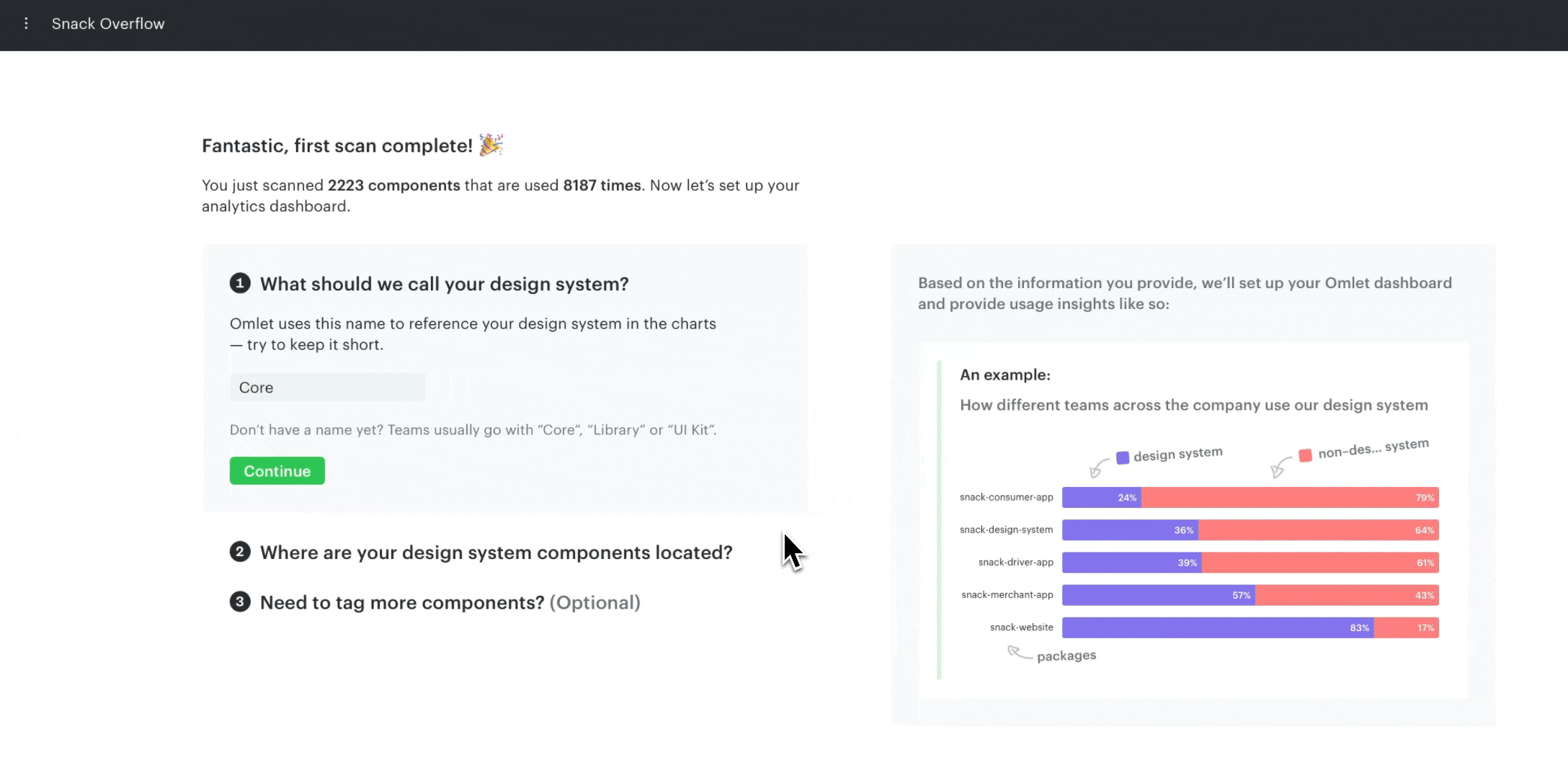 Congrats! :partying\_face: You completed the setup. On the Analytics page, Omlet provides some default charts to give you a high-level overview of your design system.