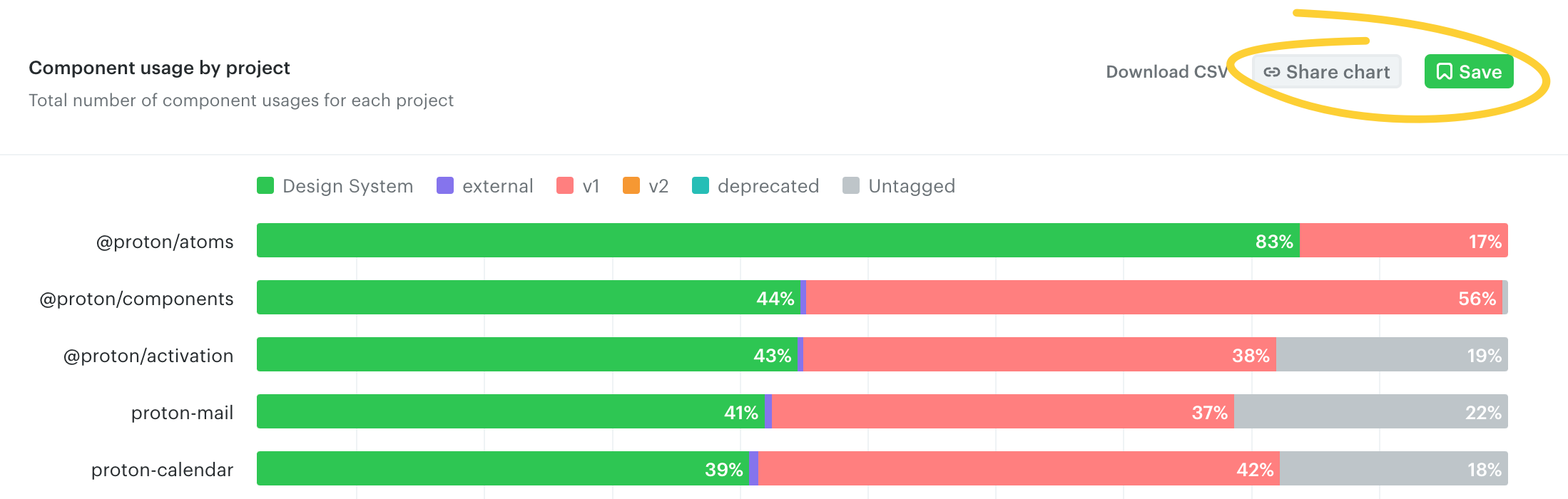 Using the buttons on the top-right, you can share the chart with a teammate or save it to your dashboard to quickly access it in the feature.