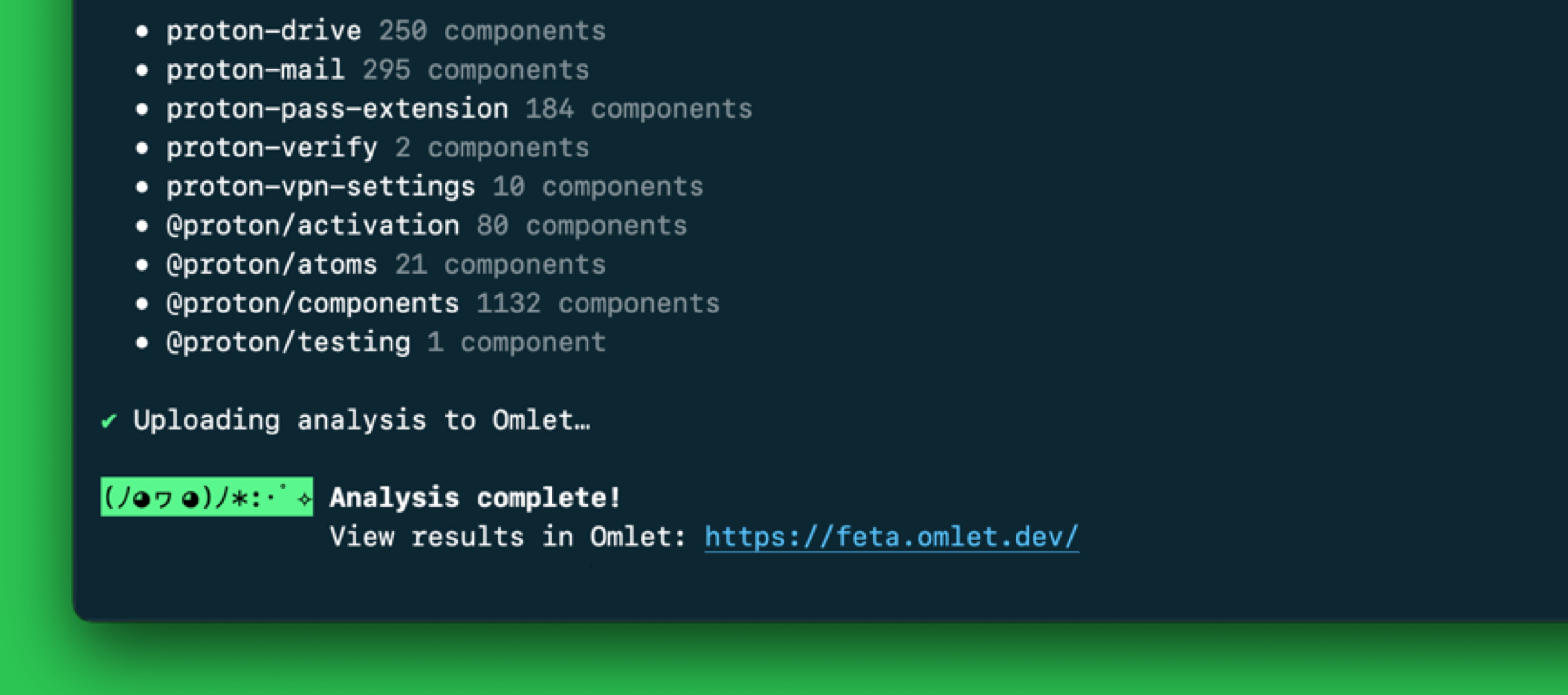 You can [invite a developer](https://docs.omlet.dev/cli-and-dashboard/workspace-and-account/invite-team-members) to scan the repositories. While waiting for a scan, explore the app using our [demo workspace](https://feta.omlet.dev/proton/analytics).
